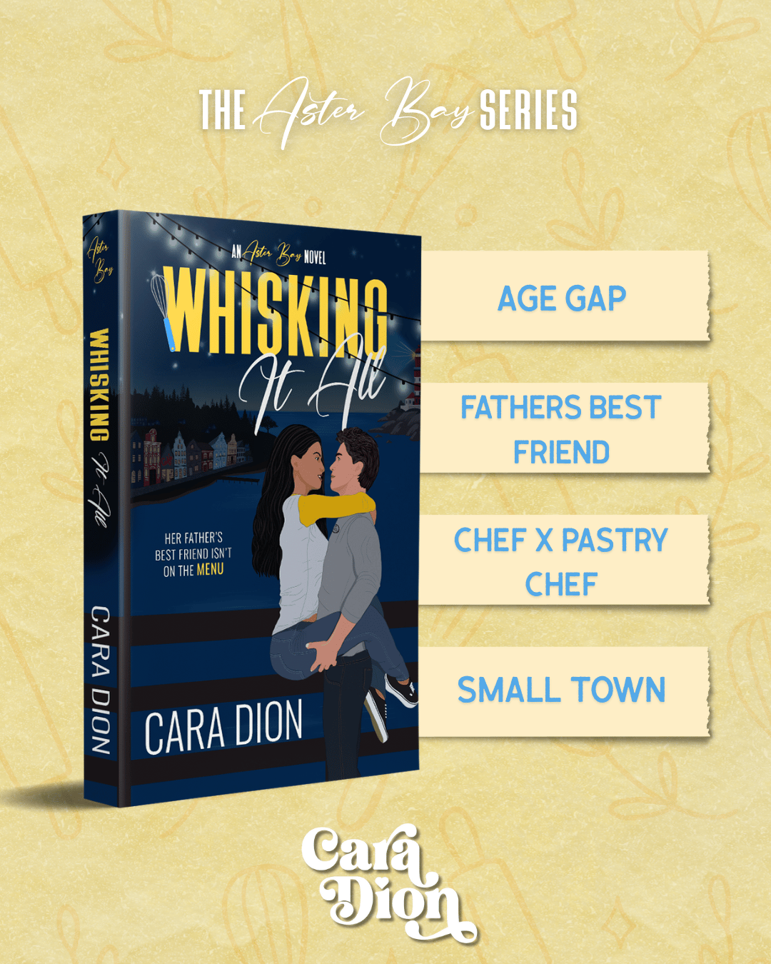 Falling for her dad’s best friend is a recipe for disaster. Tessa Cordeiro never planned to move back to her hometown. But when her estranged father offers her a chance to kick-start her culinary career, Tessa makes herself a promise: she won’t fall in love with the town of Aster Bay—or her father’s best friend. Even if he was the most unforgettable one-night stand of her life. Jameson Chase has called Aster Bay home for nearly twenty years, but despite owning its most popular restaurant, he can’t fight the feeling that he doesn’t belong. Chairing the local food and wine festival is his chance to make a mark on the small town, but when Jameson’s new co-chair turns out to be the woman he couldn’t forget, his social standing is no longer the only thing at risk... As late-night texting becomes rooftop rendezvous, can they keep the heat in the kitchen—or will the sparks between them send both their lives up in flames? Whisking It All is a standalone, steamy father’s best friend romance featuring trash-talking grandmas, found family, You’ve Got Mail vibes, and a guaranteed HEA.
